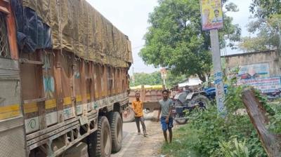 आधी रात गूगल मैप ने भटकाया, संकरी गली में फंसा ट्रेलर