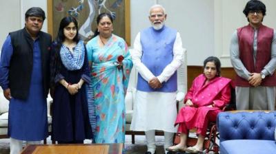 पूरे परिवार के साथ पीएम मोदी से भेंट की पूर्व मुख्यमंत्री वसुंधरा राजे ने