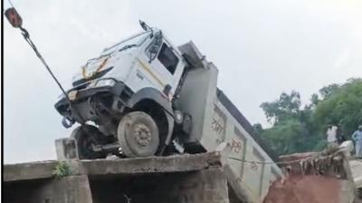 रेत भरे ट्रक का भार नहीं झेल पाया पुल, छतरपुर में ढहा पुल — बाल-बाल बचे लोग