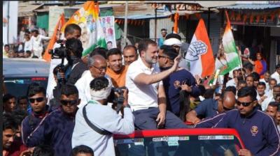 जनता के बीच राहुल गांधी, खुली जीप में निकाला भव्य रोड शो