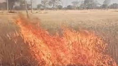 आग की लपटों में समाई 500 एकड़ फसल, गांव में मचा हड़कंप