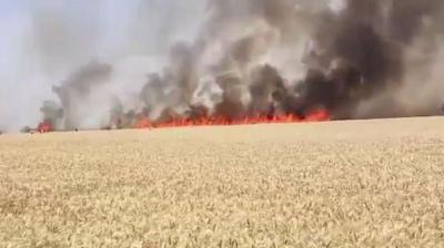 हरदा में खेतों में लगी भीषण आग: 50 एकड़ गेहूं की फसल जलकर राख