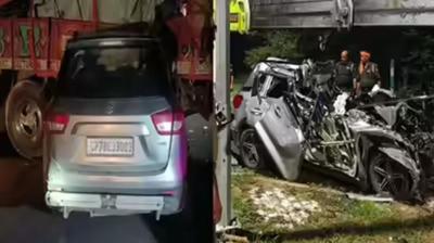 तेज रफ्तार ब्रेजा कार ट्रक से भिड़ी, ड्राइवर समेत तीनों की मौके पर मौत