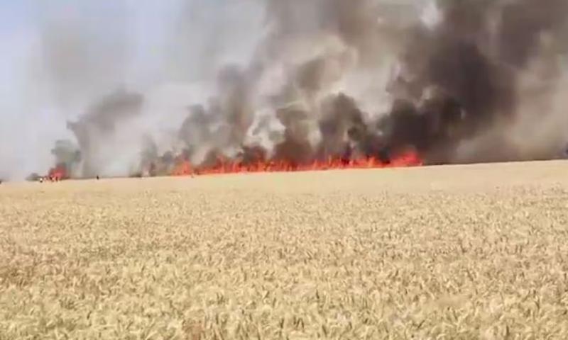हरदा में खेतों में लगी भीषण आग: 50 एकड़ गेहूं की फसल जलकर राख