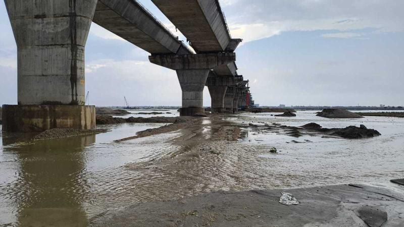 यूपी के प्रयागराज में रिंग रोड परियोजना के तहत दूसरे चरण में बनाए जा रहे सिक्स लेन पुल का निर्माण कार्य गंगा नदी में आई प्राकृतिक बदलावों के कारण प्रभावित हो गया है. संगम से आगे गंगा में दो धाराएं निकल आने और उनके बीच टापू बन जाने से पुल की बुनियाद यानी पिलर निर्माण का काम पिछले तीन महीनों से ठप पड़ा है. स्थिति को देखते हुए राष्ट्रीय राजमार्ग प्राधिकरण (NHAI) ने अब पीपे के पुल बनाकर निर्माण कार्य को आगे बढ़ाने का निर्णय लिया है |