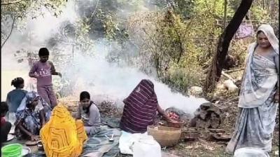 खुले खेत में सामूहिक रूप से पकाया जाता है भोजन