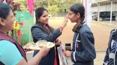 पुष्पवर्षा के बीच शुरू हुई यूपी बोर्ड परीक्षा, दिखा उत्साह