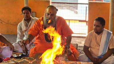 गाजियाबाद के दूधेश्वर नाथ मंदिर में बारिश कराने के लिए किया गया हवन