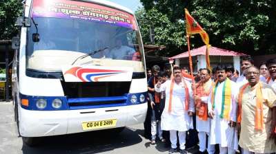 मुख्यमंत्री विष्णु देव साय ने मां बम्लेश्वरी के दर्शन के लिए जा रहे श्रद्धालुओं की बस को झंडी दिखाकर किया रवाना