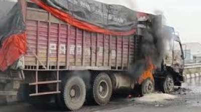 भिलाई में चलती ट्रक में लगी भीषण आग