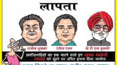 रायपुर । बीजेपी ने कांग्रेस राज्य सभा सांसदों को लेकर कसा तंज, लापता वाला पोस्टर किया जारी बीजेपी ने x पर पोस्ट कर लिखा । छत्तीसगढ़ियों का हक मारने वाले कांग्रेसियों...