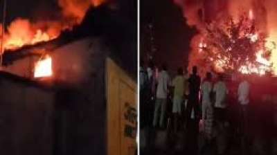 बारदाना फैक्टरी में लगी भीषण आग... लाखों रुपए का माल जलकर खाक, शॉर्ट सर्किट का अंदेशा