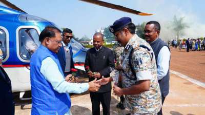 मुख्यमंत्री विष्णु देव साय का नारायणपुर हेलीपैड में जनप्रतिनिधियों एवं अधिकारियों ने किया आत्मीय स्वागत